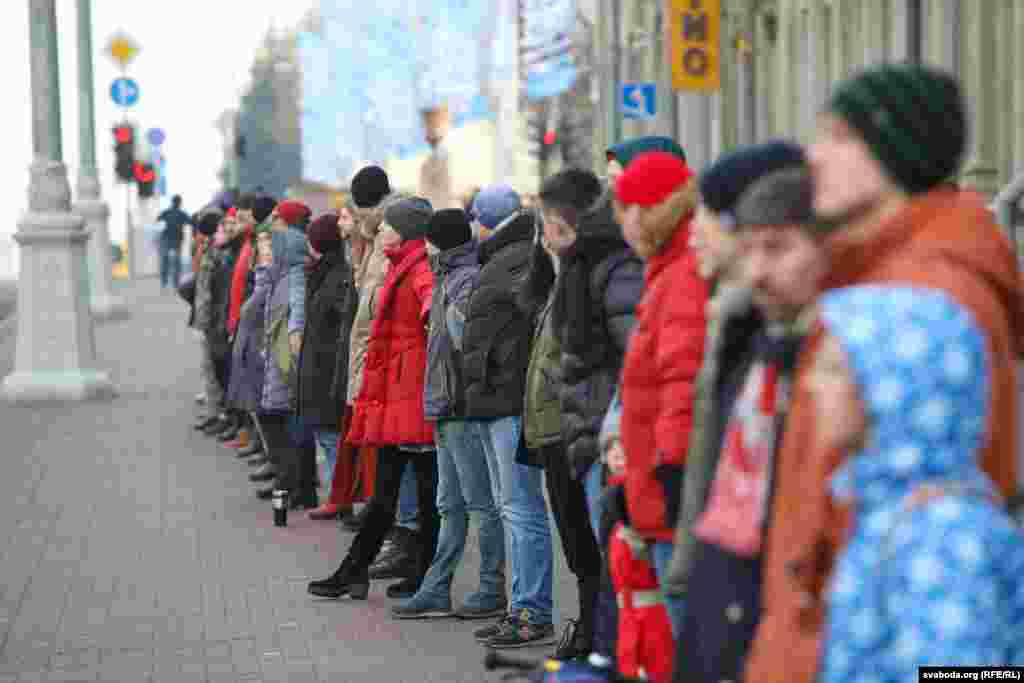 Пратэсты пачаліся з акцыі "Ланцуг незалежнасьці". Некалькі соцень людзей узяліся за рукі, устаўшы ўздоўж розных частак праспэкту Незалежнасьці.