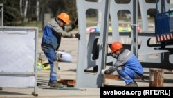 31 сакавіка ў Менску працягваецца падрыхтоўка да сьвяткаваньня Дня Перамогі — рабочыя пачалі ўзводзіць трыбуны да параду 9 траўня.