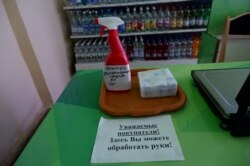 У вясковай краме, сельскім клюбе, бібліятэцы і школе на ўваходзе антысэптыкі.