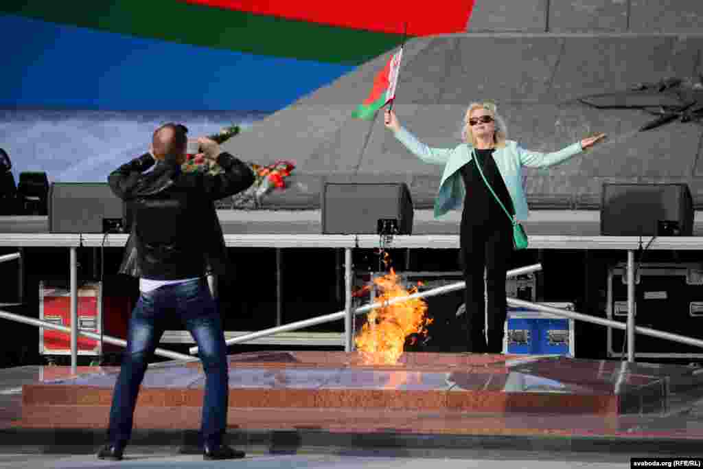 Сэлфі ля вечнага агню, пустыя вуліцы і салют. Плошча Перамогі 9 траўня. ФОТА