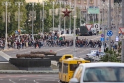 Менск: Калёна ў 200 мэтраў рухаецца ад плошчы Перамогі ў бок Кастрычніцкай, у калёне некалькі соцень людзей. ДАі перакрыла праспэкт на скрыжаваньні з вуліцай Казлова.