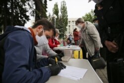 Жыхары Гомля 28 траўня выстраіліся ў чаргу, каб пакінуць подпіс за Сьвятлану Ціханоўскую, якая вылучаецца кандыдатам на прэзыдэнта.