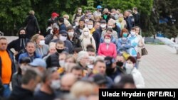 Прадпрымальнік Максім кажа, што стаў у чаргу, каб паказаць уладзе, што людзям не абыякава.