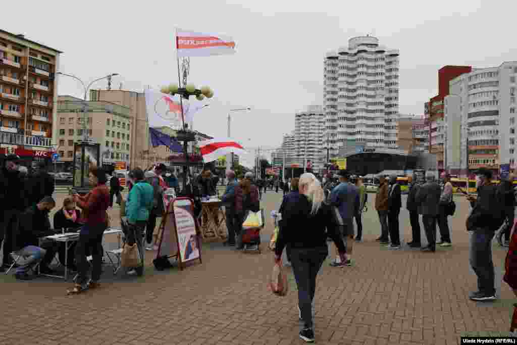 Ля Камароўскага рынку ў Менску разгорнутыя пікеты Сяргея Чэрачня, Валера Цапкалы, Віктара Бабарыкі, Андрэя Дзьмітрыева, Вольгі Кавальковай, Мікалая Казлова і Юрася Губарэвіча.