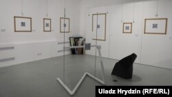 З раніцы ў галерэі можна было заўважыць шмат журналістаў, куратара карпарацыйнай калекцыі Аляксандра Зіменку і толькі адну наведніцу — працоўны дзень.