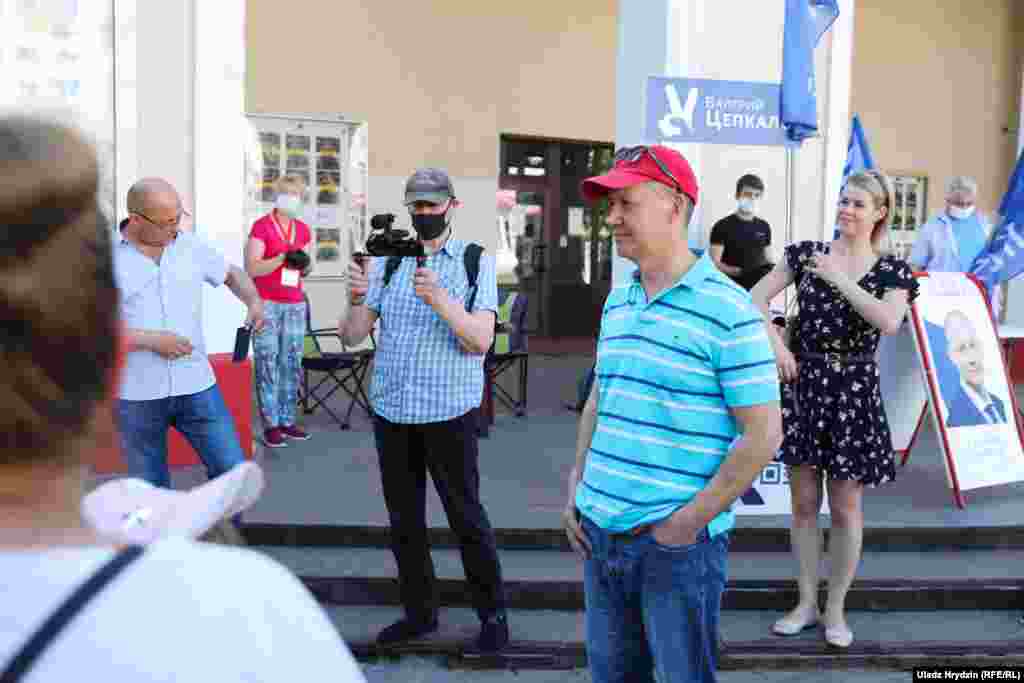 Прэтэндэнт на пасаду кандыдата ў прэзыдэнты Беларусі Валер Цапкала 17 чэрвеня наведаў выбарчы пікет у Маладэчне.