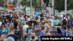 Ланцуг салідарнасьці расьцягнуўся на некалькі кілямэтраў — ад плошчы Якуба Коласа амаль да плошчы Незалежнасьці. Радыё Свабода вядзе жывы рэпартаж, нашы карэспандэнты гутараць зь людзьмі. Мы выбралі для вас некаторыя выказваньні нашых суразмоўцаў.