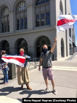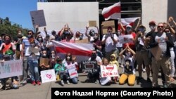 150 беларусаў Сан Францыска і Бэй Эрыі прыйшлі ў нядзелю на пікет салідарнасьці, стаўшы ў ланцуг уздоўж будынка галоўнага порту Сан Францыска (San Francisco Ferry Building).