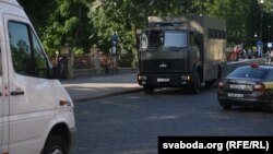 Прыехалі два аўтазакі і некалькі дзясяткаў міліцыянтаў. Яны выціснулі ланцуг з вуліцы Ажэшкі, яго ўдзельнікі перайшлі на Савецкую плошчу. На месцы, дзе яны былі спачатку, сталі міліцыянты.