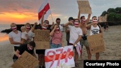 У Інданэзіі, на Балі, беларусы сабраліся на акцыю салідарнасьці на ўзьбярэжжы акіяну.