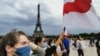 Каля 60 чалавек сабраліся 1 чэрвеня каля амбасады Беларусі ў Парыжы на акцыю супраць палітычных рэпрэсіяў.