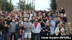 Спэцназ і супрацоўнікі ў цывільным затрымалі дзясяткі чалавек уздоўж праспэкту Незалежнасьці ў цэнтры Менску. Каля плошчы Перамогі ў жывым эфіры людзі ў цывільным забралі і журналсітаў Свабоды Алеся Пілецкага і Андрэя Рабчыка.