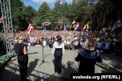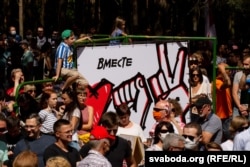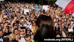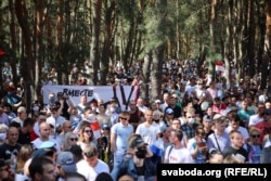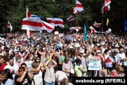 Да 20 тысяч чалавек. У Берасьці мітынг Ціханоўскай правялі ў сасновым бары. Фотарэпартаж