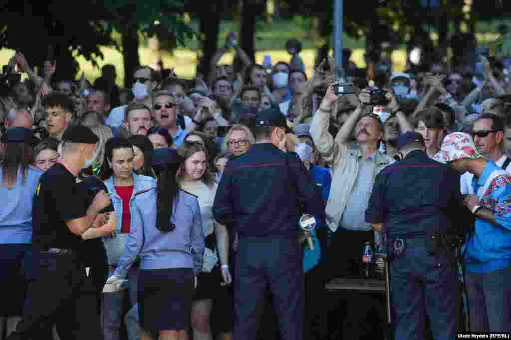6 жніўня, у дзень анансаванага мітынгу-канцэрту Сьвятланы Ціханоўскай у парку Дружбы народаў, улады занялі ўсе пляцоўкі, вылучаныя для агітацыі ў Менску, рознымі мерапрыемствамі. На плошчы Бангалор зладзілі сьвяткаваньне Дня чыгуначных войскаў. Сьвятлана Ціханоўская з паплечніцамі па абедзе абвясьціла, што ўвечары наведае адно з афіцыйных мерапрыемстваў у Кіеўскім сквэры – Дзень адчыненых дзьвярэй установаў дадатковай адукацыі.