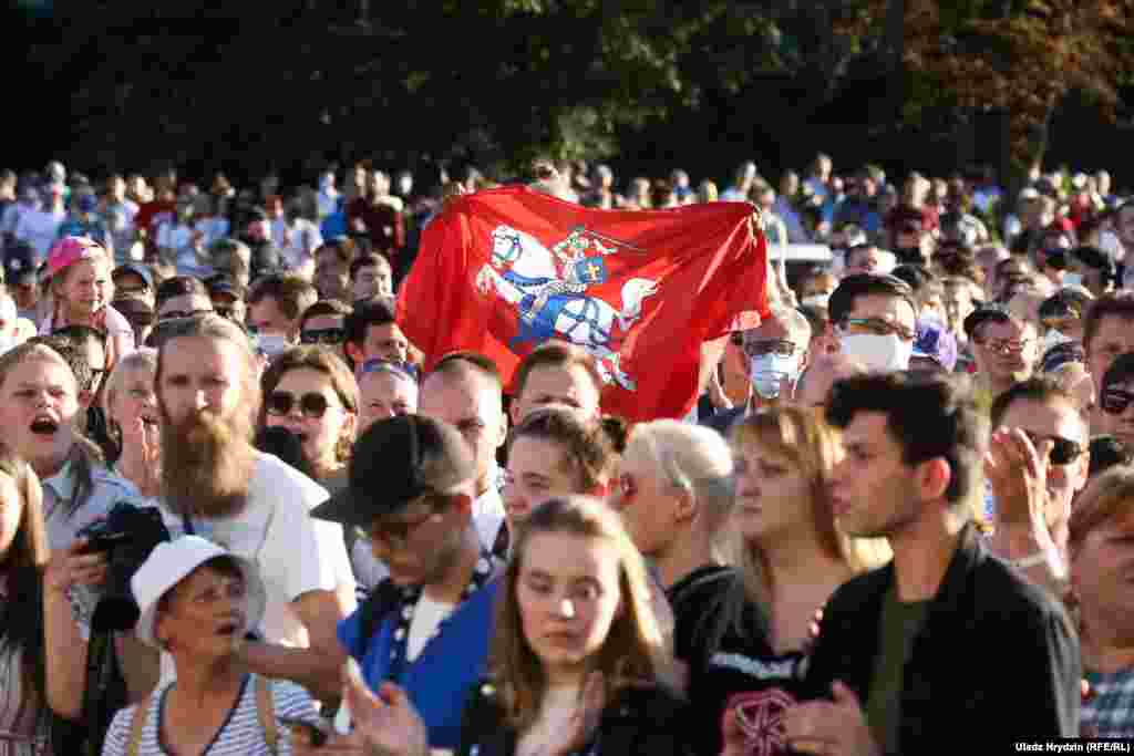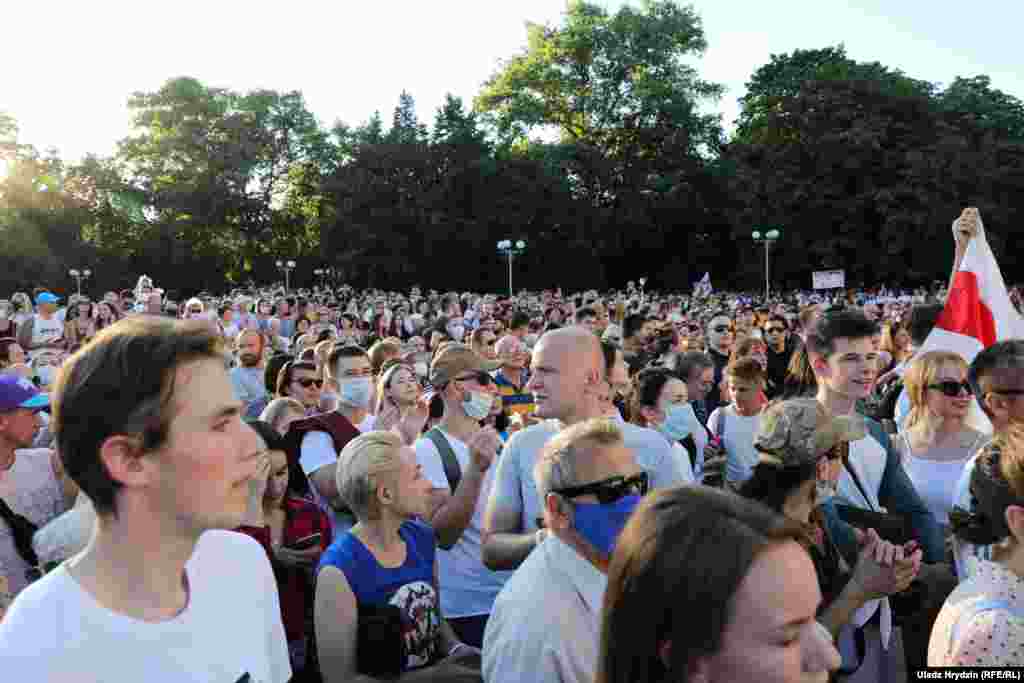 Як тысячы чалавек чакалі Ціханоўскую ў Кіеўскім сквэры. ШМАТ ФОТА