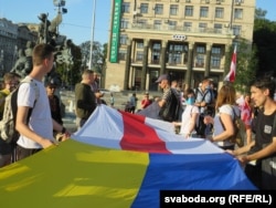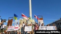 Беларускія і ўкраінскія актывісты сабраліся на майдане Незалежнасьці ў Кіеве, каб выказаць падтрымку беларусам, якія дэманструюць сваё жаданьне шляхам выбараў зьмяніць уладу.