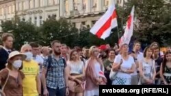 Некалькі сотняў беларусаў пасьля закрыцьця выбарчага ўчастку ў амбасадзе ў Празе сабраліся ў цэнтры Прагі на Вацлаўскай плошчы на мітынг салідарнасьці.