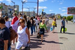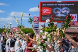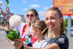 У Горадні каля аўтавакзалу дзяўчаты выйшлі ў белым і з кветкамі. ФОТА