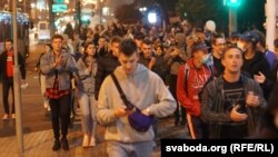 Людзі, якія стаялі ля цырку, вырашылі пайсьці на плошчу Леніна. Калі яны ішлі на плошчу, туды ж паехалі вайсковыя грузавікі. Людзі пайшлі назад, на пляцоўку каля цырку. Яны несьлі бел-чырвона-белы сьцяг на пачатку калёны і скандавалі: «Жыве Беларусь!».