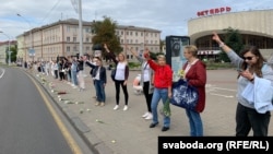 Ланцуг салідарнасьці на праспэкце Дзяржынскага каля студгарадка