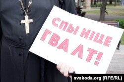 Гомельскі праваслаўны сьвятар Уладзімер Драбышэўскі выйшаў на адзіночны пікет насупраць будынку ўпраўленьня Сьледчага камітэту Гомельскай вобласьці на вуліцы Савецкай. Ён трымае плякат «Спыніце гвалт!»