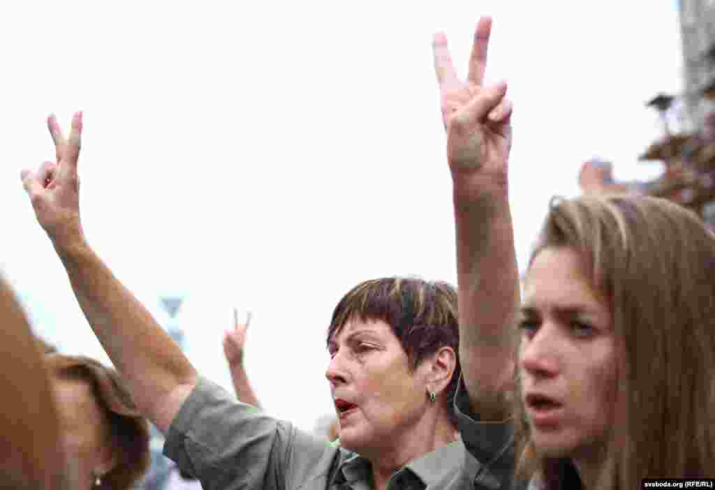 Каля Купалаўскага тэатру сьпявалі на знак салідарнасьці. Фотарэпартаж