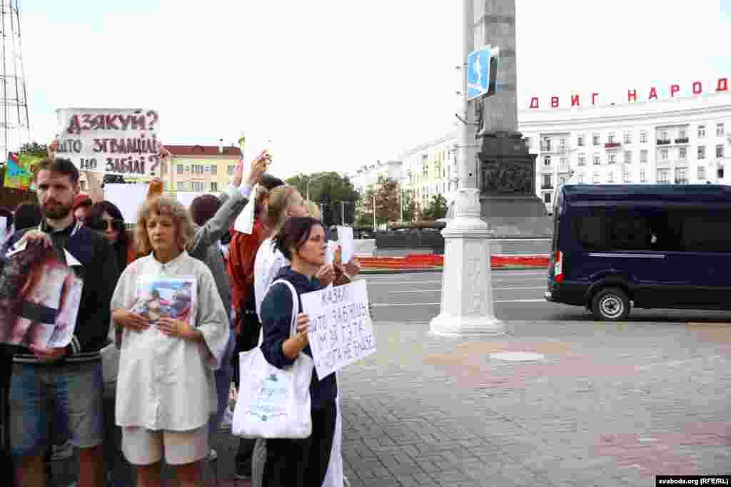 Акцыя пачалася а 16.00 на плошчф Перамогі, каля выхаду да вуліцы Захарава.