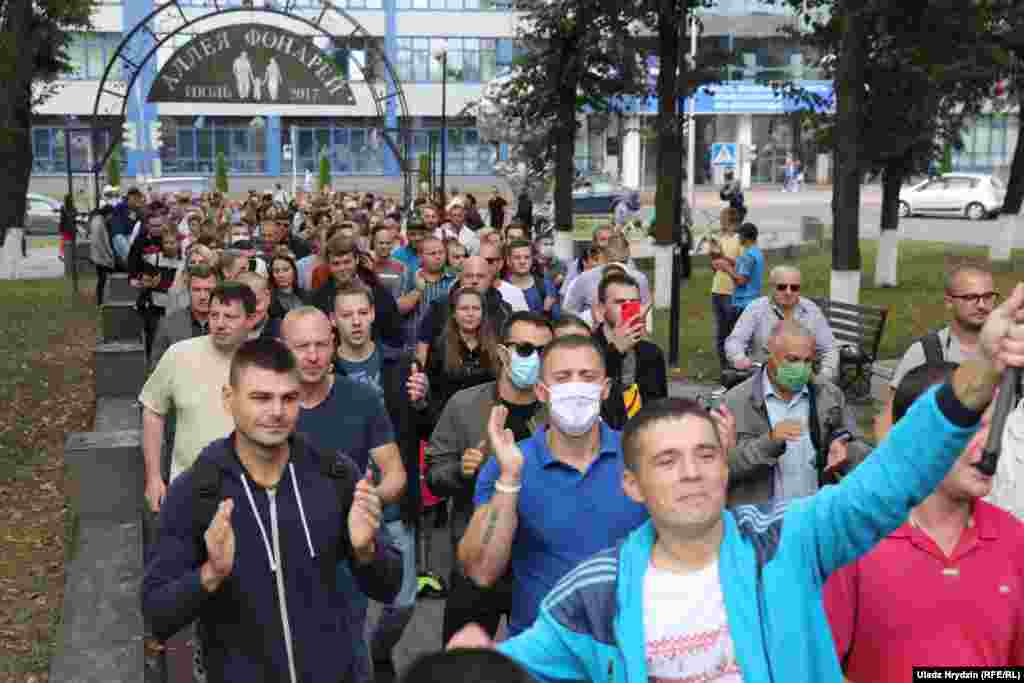 Работнікі ААТ «БелАЗ» у Жодзіна 26 жніўня выйшлі на марш у падтрымку пацярпелых падчас пратэстаў, страйкоўцаў і рэпрэсаваных работнікаў завода. Да іх далучыліся жыхары гораду. Міліцыя пад'ехала да пратэстоўцаў і папярэдзіла, што сход несанкцыянаваны, прасіла разысьціся, але людзей гэта не спыніла.