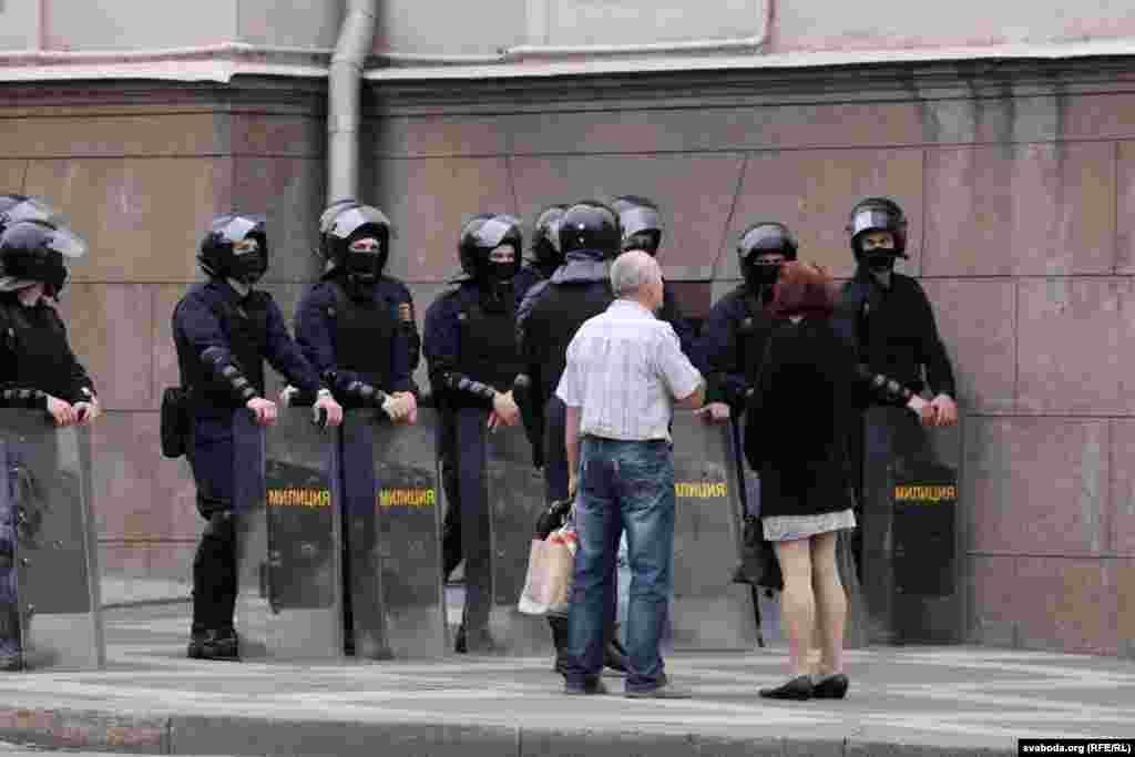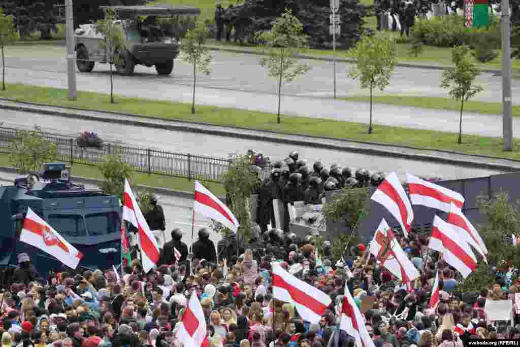 Яшчэ да пачатку акцыі сілавікі ачапілі калючым дротам стратэгічныя аб’екты — стэлу ля музэя гісторыі вайны і Палац Рэспублікі. Там стаяць вайскоўцы