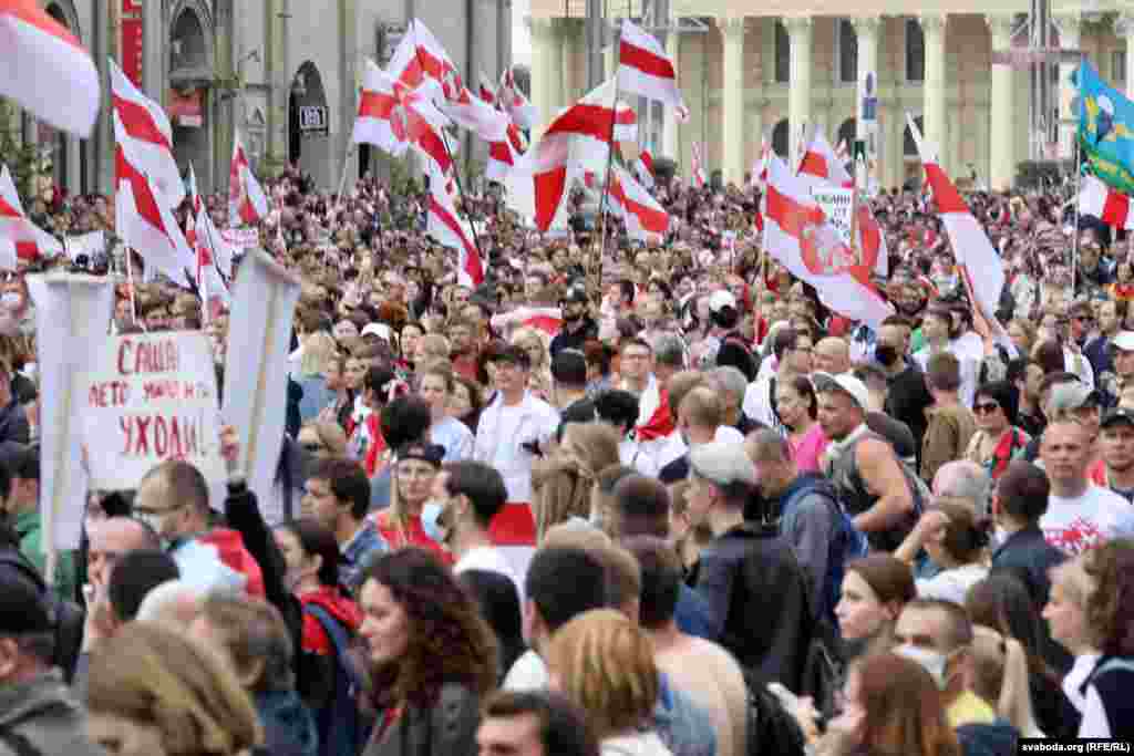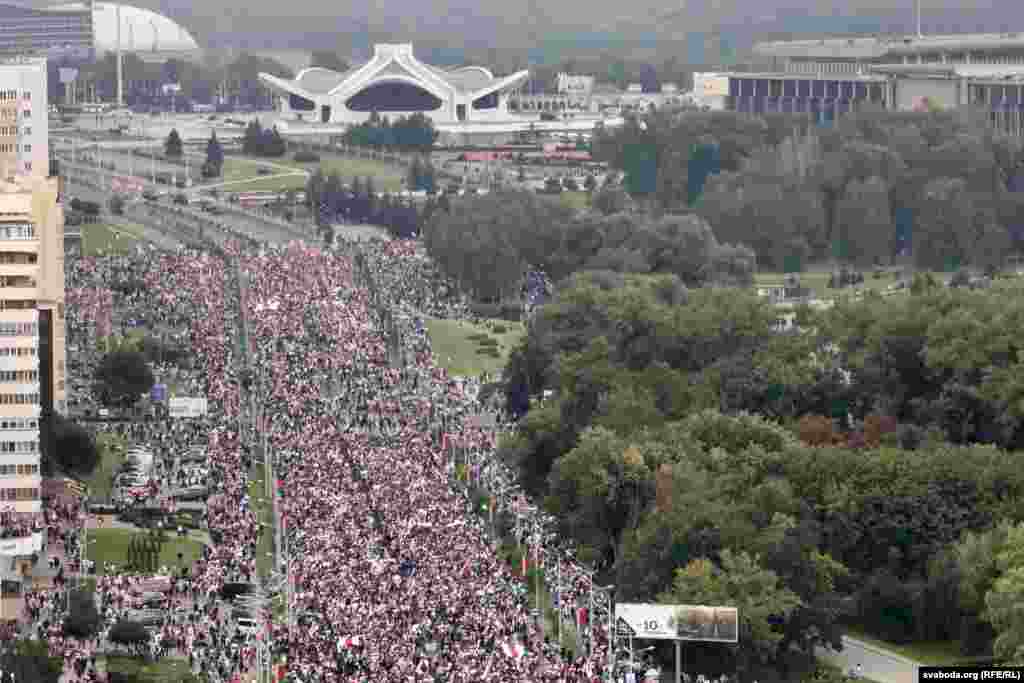 6 верасьня ў Менску і рэгіёнах адбываецца «Марш адзінства». Гэта ўжо чацьвёртая нядзеля запар, калі ў сталіцы праходзяць масавыя акцыі пратэсту супраць рэжыму Аляксандра Лукашэнкі. У кожнай зь іх удзельнічалі сотні тысяч чалавек. Сёньня не выключэньне, перадаюць карэспандэнты Свабоды зь менскіх вуліц.