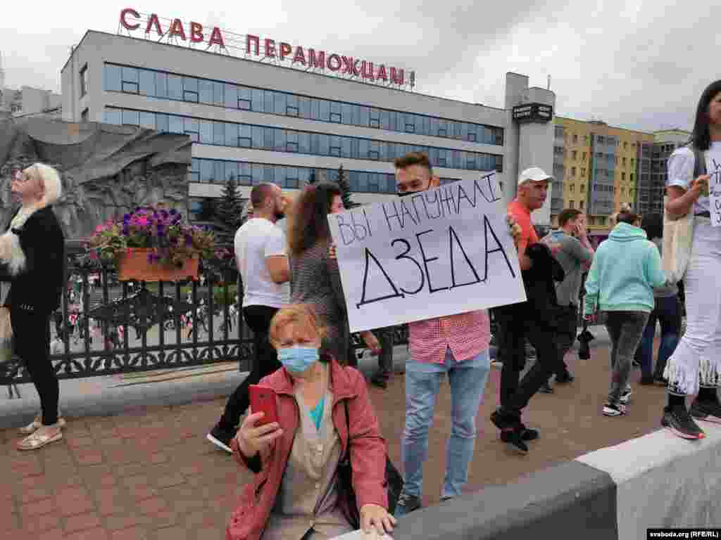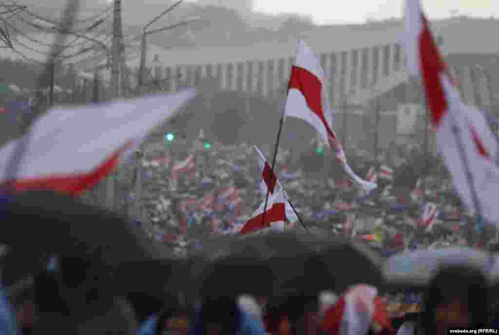 Калі пайшоў дождж, дэманстранты занялі ўсю паркоўку каля гатэлю «Вікторыя», якая знаходзіцца насупраць Палаца Незалежнасьці.