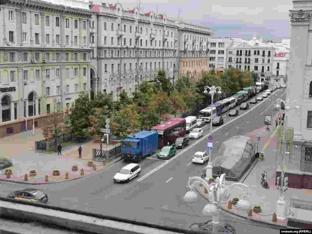 АМАП перакрыў рух на праспэкце Незалежнасьці паміж ГУМам і Нацбанкам