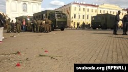 Некалькі соцень жанчын сілавікі заблякавалі каля рэстарацыі «Гамбрынус». Журналістаў адагналі. На плошчу Свабоды заехалі 5 аўтазакаў. Людзі крычаць «Фашысты!», не даюць ім праехаць.