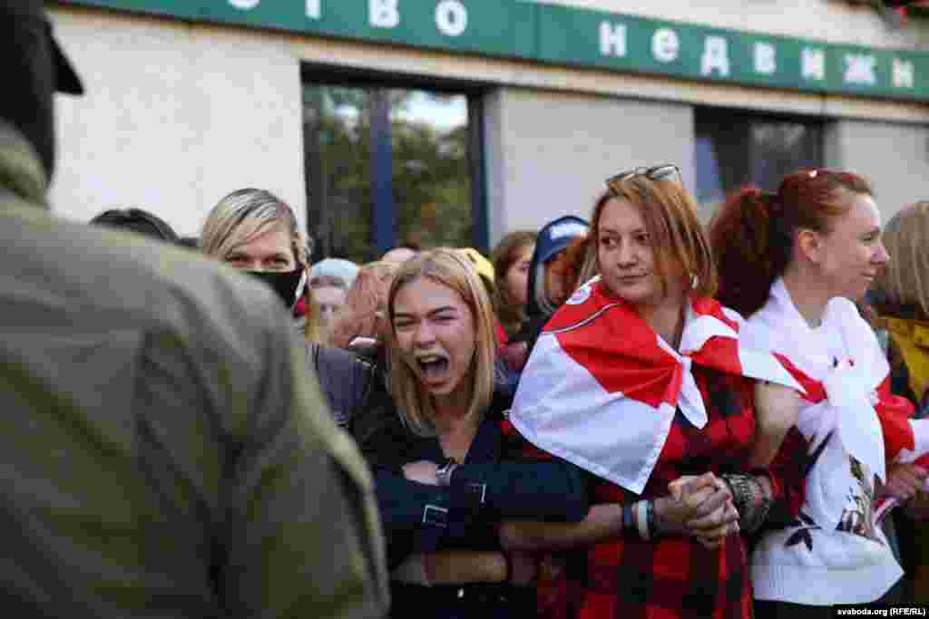 Жанчыны выстраіліся ў шэрагі і арганізавана рушылі ў бок вуліцы Багдановіча