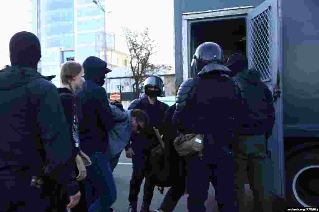Адразу зьяўляюцца аўтазакі з АМАПам, які пачынае затрымліваць людзей