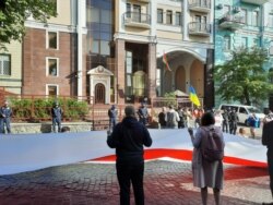 У акцыі ўзялі ўдзел каля 100 украінскіх і беларускіх актывістаў, якія патрабавалі вызваленьня палітвязьняў і спыненьня гвалту сілавых органаў супраць мірных пратэстоўцаў.