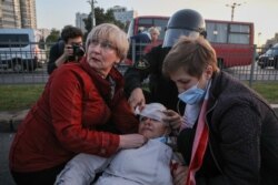 Першая параненая на сёньняшнім разгоне акцыі ля стэлы: