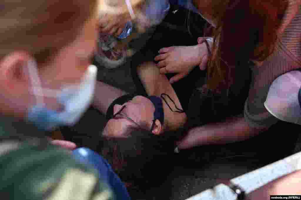 Як піша Tut.by, гэты мужчына абурыўся тым, што людзі ў масках без апазнавальных знакаў затрымліваюць людзей. У выніку яго затрымалі.