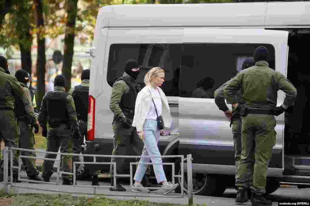 Сілавікі ў балаклавах працягвалі затрымліваць удзельніц акцыі, якія спрабавалі ўцячы, у дварах менскай гімназіі № 23. Там затрымалі некалькі дзясяткаў жанчын