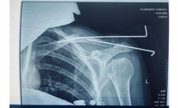 Дактары не казалі, што ў мяне пералом, да наступнага дня. Празь дзень сказалі, што адкрыты пералом. Яшчэ празь дзень, што будуць мне зьбіраць ключыцу. Як мне сказалі, паводле ваенна-палявой хірургіі маё раненьне ацэньваецца як ня вельмі складанае. Нягледзячы на тое, што было тры апэрацыі на плячы і ўскладненьне на лёгкае.