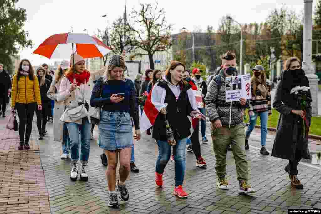 Удзельніцы акцыі сабраліся ў сквэры Сымона Балівара і прайшлі маршам ад Першамайскай да плошчы Перамогі і пасьля па праспэкце Незалежнасьці да Акадэміі Навук, адкуль зноў вярнуліся на плошчу Якуба Коласа.