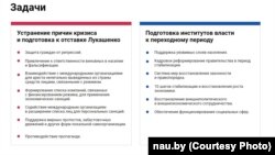 На сайце Народнага антыкрызіснага кіраўніцтва пералічаныя шырэйшыя мэты органу.