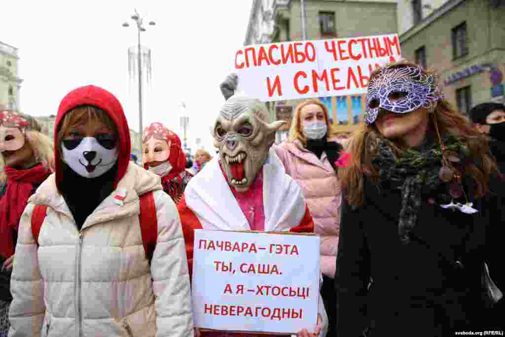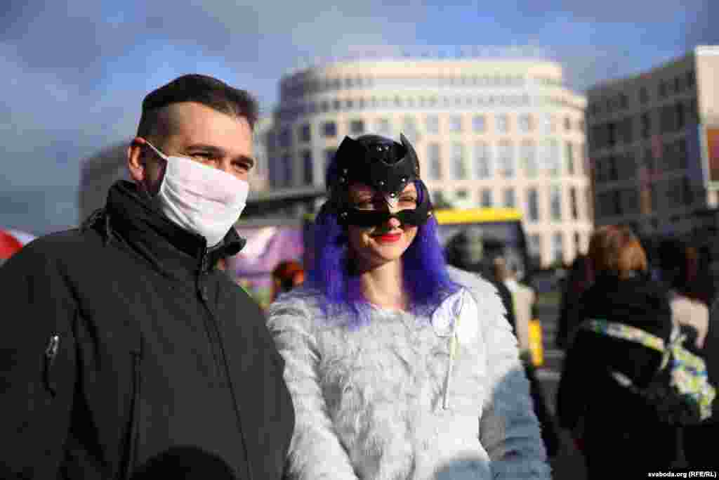 Людзі ў масках старшыні Савету рэспублікі Натальлі Качанавай і кіраўніка ГУБАЗіКу Мікалая Карпянкова