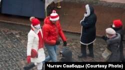 На кірмашы і на Савецкай вуліцы было відаць людзей у адзеньні белага і чырвонага колераў, нехта надзеў чырвоны капялюш Сьвятога Мікалая, хадзілі жанчыны зь бел-чырвона-белымі парасонамі.