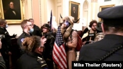 Затрыманаму «шаману» інкрымінуюцца наўмыснае пранікненьне або знаходжаньне на закрытай тэрыторыі без законных на тое падставаў, гвалтоўнае ўварваньне і парушэньне грамадзкага парадку ў Капітоліі.