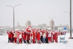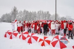 Каля 300 чалавек з розных раёнаў Менска станцавалі 9 студзеня на сьнезе ў бел-чырвона-белых касьцюмах са сьцягамі раёнаў, стужкамі і парасонамі.