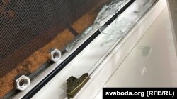 За сьняжынкі ў вакно Ірыны ўначы прыляцелі гайкі, вакно разьбітае.