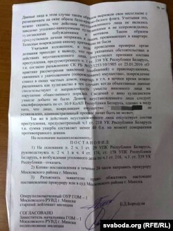 «У ходзе праверкі орган крымінальнага перасьледу прыходзіць да высновы, што ў цяперашні час, у сувязі з палітычнымі падзеямі ў краіне, сярод асобаў зь ліку грамадзянскай супольнасьці, маюцца асобы, якія нэгатыўна ставяцца да бел-чырвона-белай сымболікі», — гаворыцца ў адказе зь міліцыі.