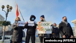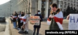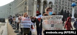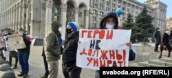 Беларусы, якія зьехалі ва Ўкраіну, ледзь не штодня праводзяць акцыі салідарнасьці. Напярэдадні яны пікетавалі амбасаду Расеі ва Ўкраіне з патрабаваньнем вызваліць затрыманага ў Маскве Аляксея Кудзіна.