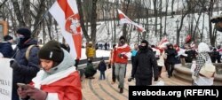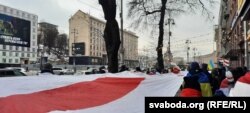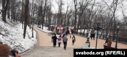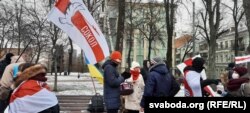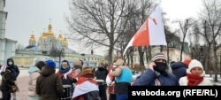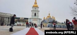 Беларусы, якія вымушаныя былі ўцячы ва Ўкраіну ад рэпрэсіяў за ўдзел у пратэстах, зладзілі шэсьце ў цэнтры Кіева, далучыўшыся да міжнароднай акцыі салідарнасьці зь Беларусьсю 7 лютага.